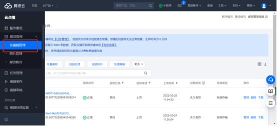 登陆腾讯云账号-搜索云点播-视频管理-上传音视频